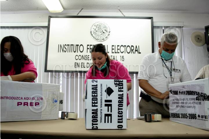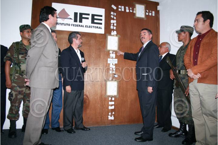 MÉXICO D.F., 25SEPTIEMBRE2008.- Se realizó la apertura de la bodega que contiene las voletas electorales de la elección 2006 las cuales fueron preparadas y re-empaquetadas para su traslado posterior a bodegas estatales, esto en la junta distrital XV del IFE, en un acto encabezado por el consejero presidente del IFE, Leonardo Valdés,. FOTO: RICARDO CASTELAN/CUARTOSCURO.COM