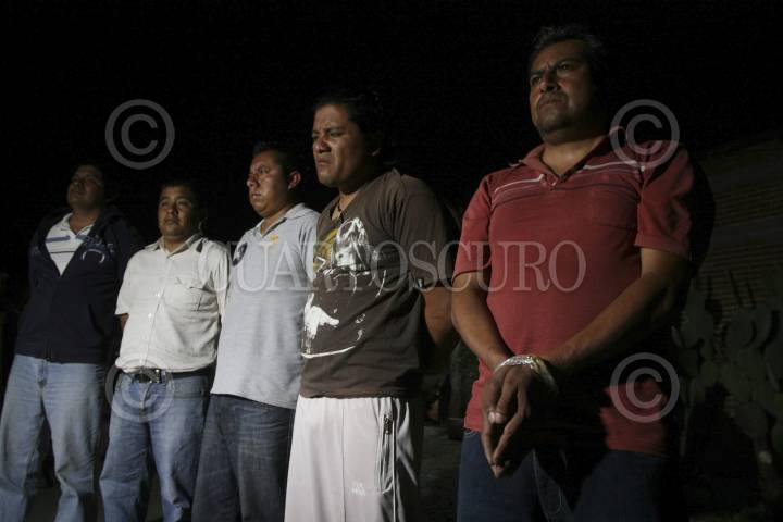 MITLA, OAXACA, 21NOVIEMBRE2012.- Luego de soportar el bloqueo carretero por más de cinco horas, pobladores de San Pablo Villa de Mitla, Santiago Matatlán, San Dionisio Ocotepec y Totolapan hicieron frente a los maestros y a base de pedradas y golpes retiraron el plantón. El saldo del enfrentamiento fue cerca de 20 personas con lesiones menores y 17 unidades con diversos daños, 4 de ellas volteadas. Los pobladores de Mitla retuvieron a cinco profesores a los cuales mantuvieron con los ojos vendados y amarrados de las manos. FOTO: ARTURO PÉREZ ALFONSO /CUARTOSCURO.COM