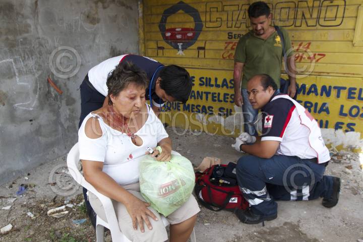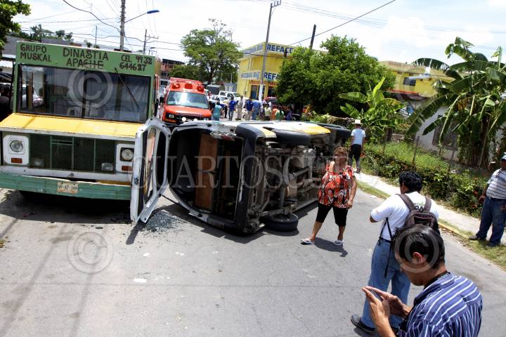 VILLAHERMOSA, TABASCO, 01JULIO2013.- Cuatro pasajeros que viajaban a bordo de una combi del servicio público colectivo resultaron con fuertes heridas, y otras seis fueron atendidas por lesiones menores en una volcadura, donde todo se debió al exceso de velocidad de la unidad del transporte al colisionar contra un vehículo particular. En el hecho personal de la Cruz Roja atendieron a los heridos y lesionados que fueron registrados en las inmediaciones de la calle Independencia esquina Nicolas Bravo de la colonia Tamulte de las Barrancas. FOTO: MARCO POLO GUZMÁN HERNÁNDEZ/CUARTOSCURO.COM