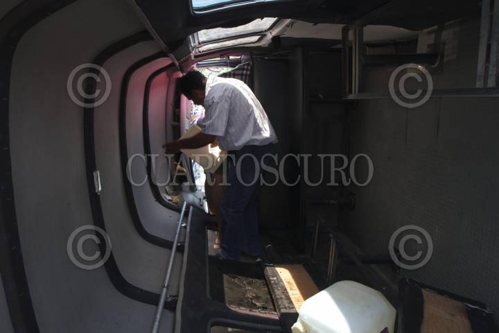 TECÁMAC, ESTADO DE MÉXICO, 01OCTUBRE2008.- Al menos 10 lesionados y cinco unidades del transporte público fue el saldo que dejó un enfrentamiento de Taxistas irregulares y disidentes del sitio "San Diego", junto con operadores de la ruta 74, contra choferes regulares "San Diego" porque los primeros quieren entrar a la unidad habitacional Villas del Real y prestar el servicio de transporte hacia la Central de Abastos que los segundos ya están prestando desde hace años el servicio en el lugar y cuentan con la autorización de transporte terrestre, que los disidentes no tienen. En el lugar quedaron unidades destrozadas de ambos bandos. FOTO: MARIO NULO/CUARTOSCURO.COM