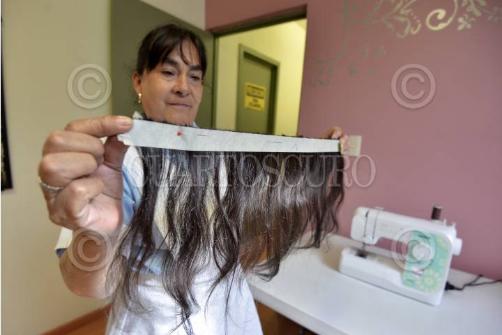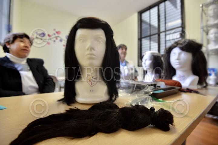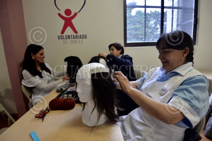 TOLUCA, ESTADO DE MÉXICO, 30AGOSTO2018.- El Voluntariado del Instituto de Salud del Estado de México (ISEM) inició las labores del Taller de Pelucas Oncológicas Artesanales, que pretenden beneficiar a pacientes que padecen cáncer, y como una forma de elevar la autoestima y recuperación en personas que han perdido el cabello a causa de los tratamientos contra esta enfermedad. Para elaborar las pelucas se utiliza cabello donado por la población, se utilizan de 16 a 20 trenzas de al menos 20 cm de largo, se cosen y pegan con encaje y posteriormente se cortan a la medida del paciente. FOTO: ARTEMIO GUERRA BAZ /CUARTOSCURO.COM