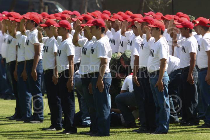 MÉXICO, D.F., 12MARZO2011.- Jóvenes del Servicio Militar Nacional durante el inicio de la Campaña de Capacitación a los Conscriptos y Voluntarias en la Campaña Nacional para la prevención de las adicciones que se realizo en el Campo Militar No. 1A. FOTO: RODOLFO ANGULO/CUARTOSCURO.COM