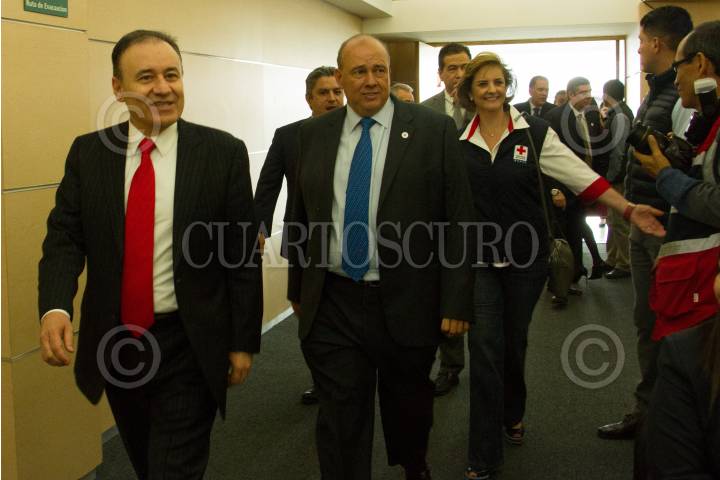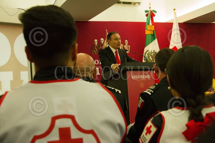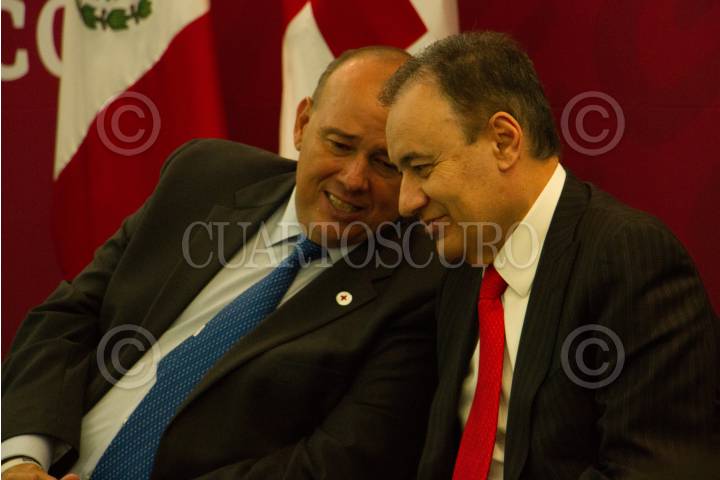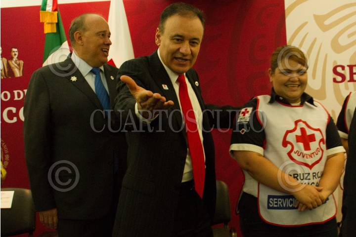 CIUDAD DE MÉXICO, 21MARZO2019.- Alfonso Durazo Montaño, Secretario de Seguridad y Protección Ciudadana; Alejandro Federico Mugueza Limón, Director General de Captación de fondos de la Cruz Roja Mexicana, durante la ceremonia del arranque de la Colecta nacional para la Cruz Roja Mexicana. FOTO: ROGELIO MORALES /CUARTOSCURO.COM