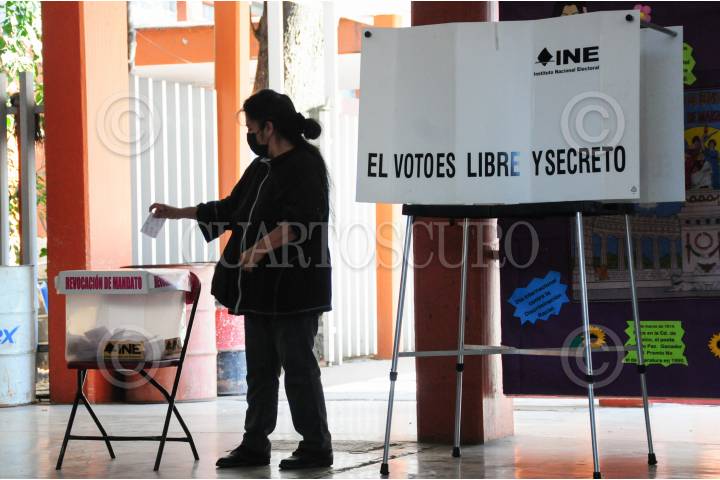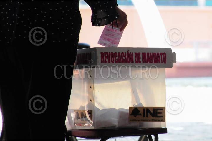 Urna donde los ciudadanos mexicanos colocan sus votos durante la Revocación de Mandato.