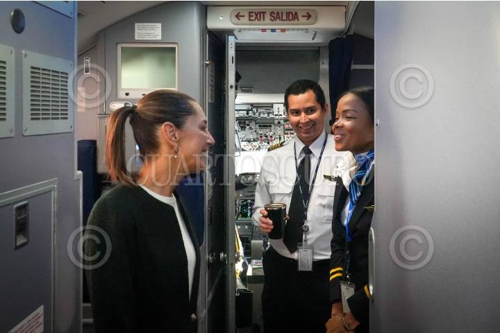 CIUDAD DE MÉXICO, 17NOVIEMBRE2024.- Claudia Sheinbaum, Presidenta de México, partió rumbo a Brasil para participar en el encuentro del G20. La mandataria mexicana se trasladó en un vuelo comercial. FOTO: PRESIDENCIA//CUARTOSCURO.COM