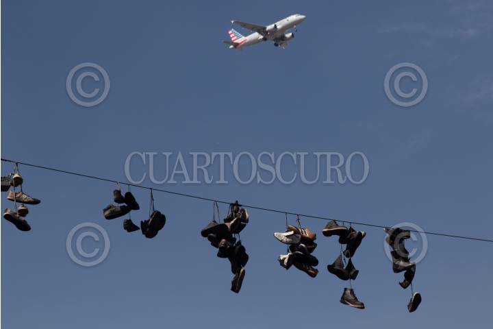 CIUDAD DE MÉXICO, 20ENERO2019.- Un avión con la bandera norteamericana surca los cielos de la capital mexicana. FOTO: MOISÉS PABLO /CUARTOSCURO.COM
