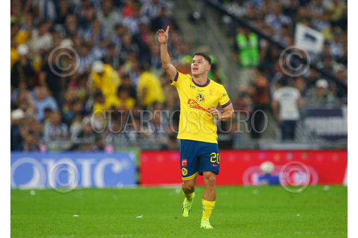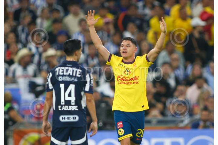 GUADALUPE, NUEVO LEÓN, 15DICIEMBRE024.- Richard Sánchez del América, festeja el gol ante los Rayados del Monterrey en el estadio BBVA, partido de vuelta de la final de la Apertura 2024. Marcador Global medio tiempo: Monterrey: 1 - América: 3. FOTO: GABRIELA PÉREZ MONTIEL / CUARTOSCURO.COM