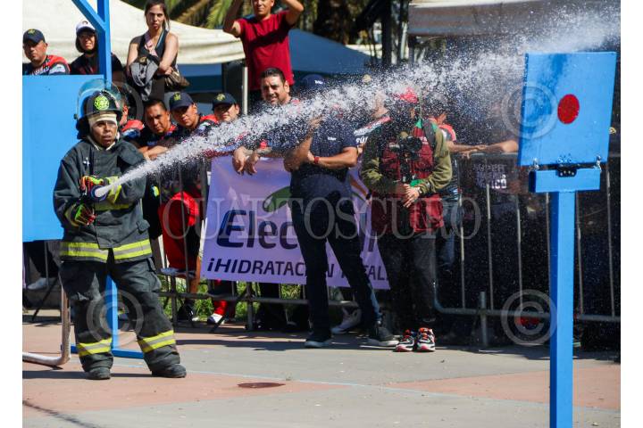 Elementos del cuerpo de vulcanos de la Ciudad de México y de Puebla realizaron prácticas de entrenamiento en la Magdalena Mixuhca.