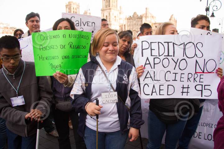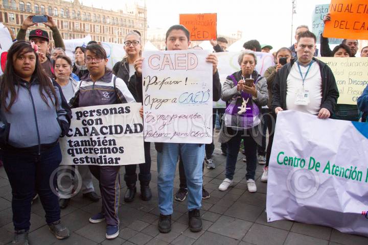 CIUDAD DE MÉXICO, 11OCTUBRE2019.- Integrantes del Centro de Atención a Estudiantes Discapacitados, se manifestaron en las afueras de Palacio Nacional. Leticia Ramírez, atendió a los manifestantes. FOTO: VICTORIA VALTIERRA /CUARTOSCURO.COM