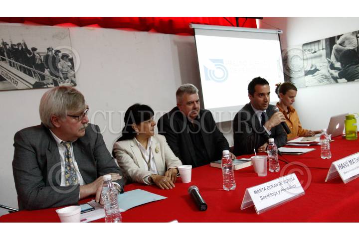 MÉXICO, D.F., 13MAYO2015.- Stefan Jost, director fundador de Komrad Adenauer; Marta Duran Huerta, sociologa y periodista; Hans Mathieu, director fundador Friedrich Ebert; Cristoph Breuning, de la embajada de Alemania y Alexa Pauls, coordinadora durante la presentación del Premio Alemán de Periodismo Walter Reuter 2015 que se realizó en el Club de Periodistas. FOTO: RODOLFO ANGULO /CUARTOSCURO.COM