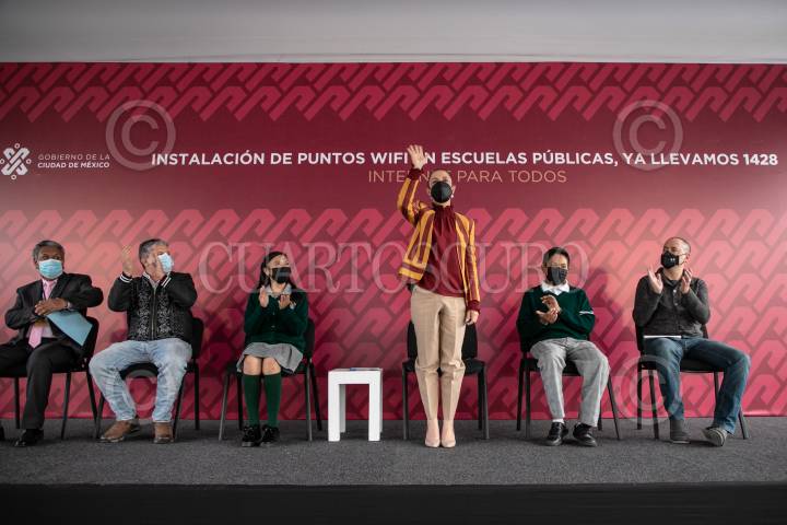 Claudia Sheinbaum Pardo, jefa del Gobierno de la Ciudad, supervisó el servicio de internet en la Escuela Ignacio Manuel Altamirano, en la alcaldía Miguel Hidalgo.