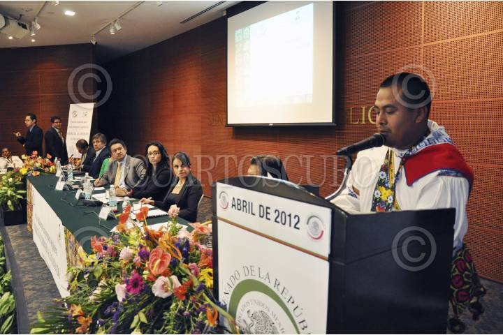 MÉXICO, D.F., 19ABRIL2012.- Visita de indígenas Wirrarikas al Senado de la República para la realización del Foro de Análisis para una propuesta legislativa: Wirikuta, el Derecho a lo Sagrado. en el que participaron los Senadores del Grupo Parlamentario del PRD, Carlos Navarrete, José Luis Máximo García Zalvidea y Héctor Bautista para escuchar las propuestas que permitirán mantener el sitio Sagrado de Wirikuta. FOTO: CUARTOSCURO.COM