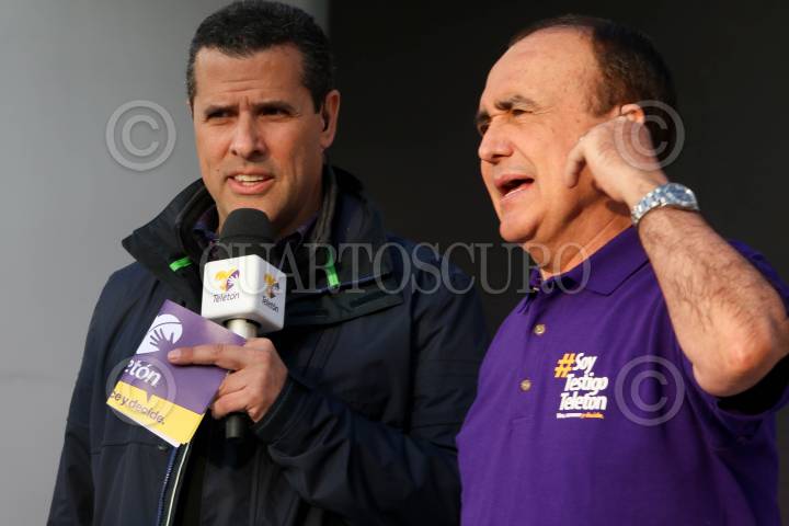 TLALNEPANTLA, ESTADO DE MÉXICO, 12DICIEMBRE2015.- Marco Antonio Regil y Pedro Ferriz de Con fueron los conductores en el CRIT del Estado de México en apoyo para la colecta anual del Teletón. FOTO SAÚL LOPEZ /CUARTOSCURO.COM