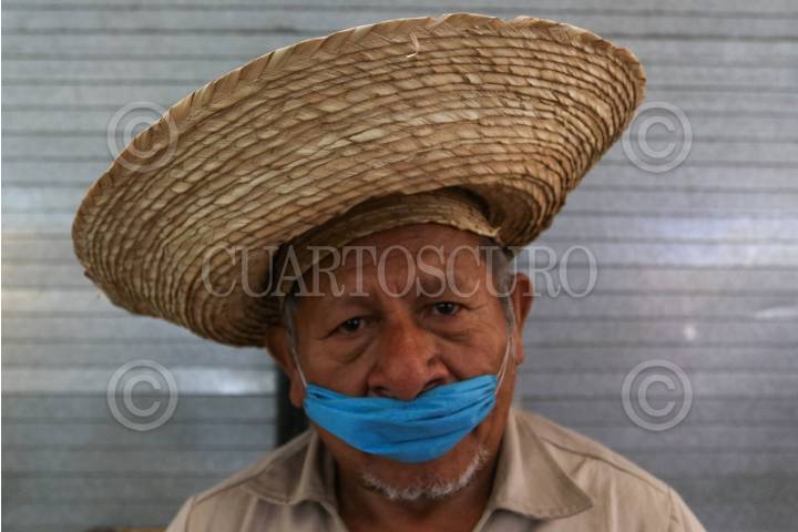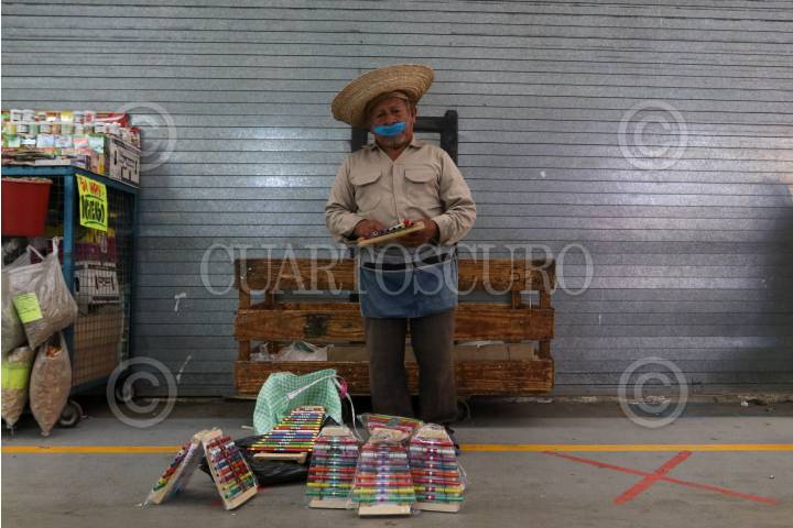 El rostro de un señor quien vende xilófonos a $110 pesos en los pasillos de la Central de Abastos