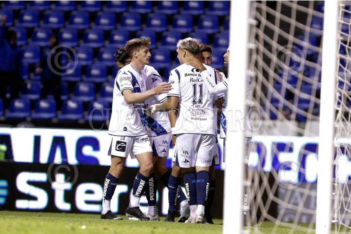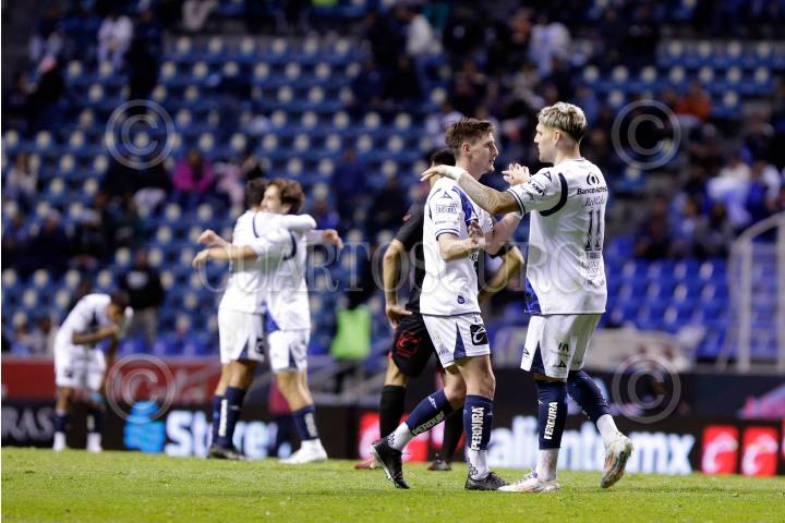 PUEBLA, PUEBLA, 21FEBRERO2025.-Jugadores en festejo de gol durante el partido entre el Club Puebla y los Xolos de Tijuana, correspondiente a la jornada 8 del torneo Clausura 2025 de la Liga BBVA MX, celebrado en el Estadio Cuauhtémoc. FOTO: MIREYA NOVO/ CUARTOSCURO.COM