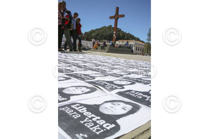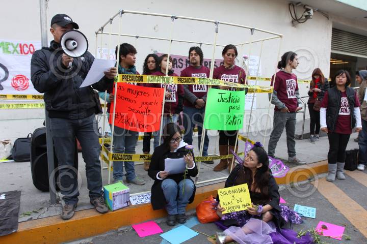 SAN CRISTOBAL DELAS CASAS, CHIAPAS, 16FEBRERO2014.- integrantes de la Sociedad civil así como organizaciones sociales de Chiapas, se manifestaron en la plaza de la paz en San Cristobal para denunciar y protestar por el arresto de la joven Yakiri Rubio quien el pasado 9 de diciembre fue secuestrada y violada en la ciudad de México. FOTO: ELIZABETH RUIZ /CUARTOSCURO.COM