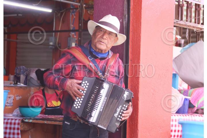 YECAPIXTLA, MORELOS, 12MARZO2024.- Vida cotidiana en el municipio de Yecapixtla, un hombre se gana unas monedas tocando el acordeón en el área de fondas del mercado, imagen tomada el pasado 12 de marzo. FOTO: MARGARITO PÉREZ RETANA/CUARTOSCURO.COM