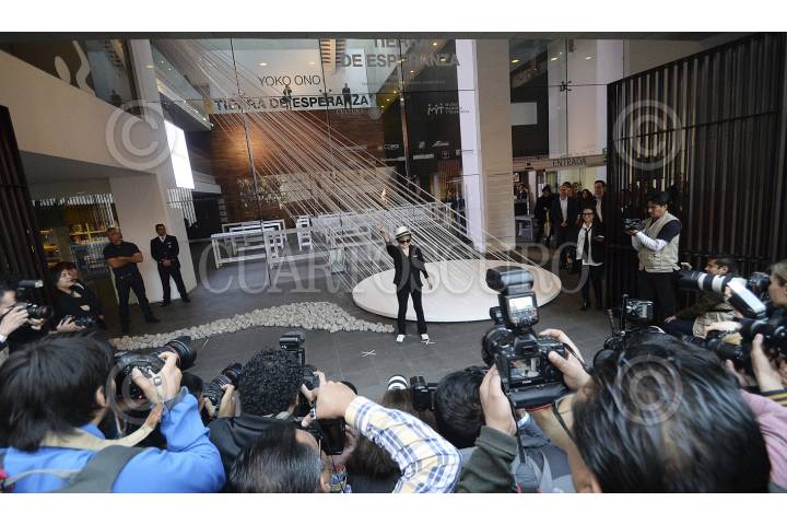CIUDAD DE MÉXICO, 02FEBRERO2016.- La artista Yoko Ono posa para los fotógrafos, previo a la conferencia y recorrido para prensa de la exposición Tierra de Esperanza, en el Museo de la Memoria y Tolerancia. FOTO: FRANCISCO SEGURA /CUARTOSCURO.COM