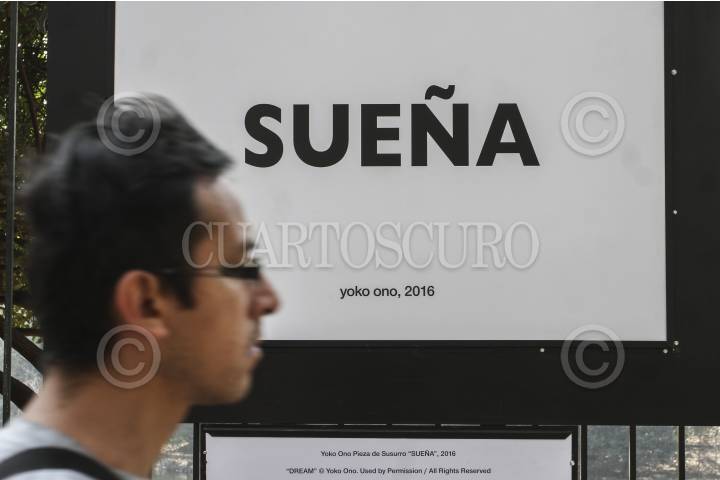 CIUDAD DE MÉXICO, 04FEBRERO2016.- Una colección de imágenes que muestran algunas de las instalaciones más afamadas de la artista Yoko Ono, quien fuera esposa de John Lennon, vocalista de la banda The Beatles, son expuestas en la Galería Abierta de las Rejas de Chapultepec. FOTO: MARÍA JOSÉ MARTÍNEZ /CUARTOSCURO.COM