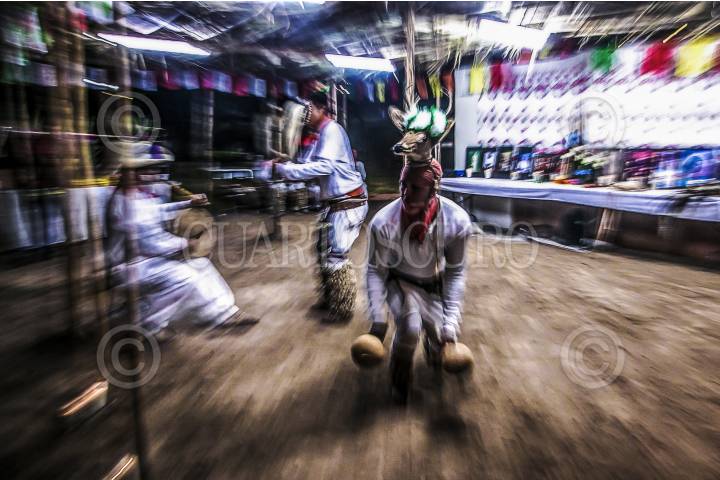 AHOME, SINALOA, 19ABRIL2014.- Miles de personas de origen indígena Mayo -Yoreme se dieron cita en el poblado de San Miguel Zapotitlán, para representar el viacrucis de Jesús, en la semana mayor donde observamos el ritual católico mezclado con danzas y cantos relacionados con el venado y judíos o fariseos, esto debido a la evangelización por parte de los jesuitas. Esta festividad es considerada la mas importante que se celebra al norte de Sinaloa ya que año tras año mas personas se suman, especialmente niños. Los judíos y fariseos llevan puestas mascaras que originalmente eran de piel de cabra, la cual sirve para conservar el anonimato y representan los cascos de los romanos en forma de ridiculización, en la actualidad las mascaras han tomado diferentes formas, las carrilleras una Falda hilada con piola bordada, con carrizos se coloca a la cintura su función es producir un sonido espectacular al caminar, correr y danzar, los Tenabaris son Capullos de mariposa secos, cocidos en brazadas en los que previamente se deposita una piedra para el sonido que son puestos en los pies, la capa es un manto bordado con imágenes religiosas le da al judío elegancia, el tambor de cuero produce el sonido para la danza del judío y una lanza para protegerse de los animales durante las corridas. Las mujeres se visten de blanco y llevan flores en un pañuelo y se les conoce como marías, la celebración empieza con el domingo de ramos, los judíos bendicen palma en la iglesia, el miércoles de ceniza a las 12 de la noche los judíos entran a la iglesia y sacan a el señor, y lo meten a la cárcel, el jueves santo se hace un conti en la tarde, el viernes santo los judíos se van a las corridas por las mañanas, tumban cruces que están en casas en busca de Cristo para darle muerte, al por la tarde se un hace un conti en el centro ceremonial ,al señor ya lo crucificaron, el sábado de gloria se corre porque el señor resucito, los arrepentidos esperan para poder entrar a la iglesia para ser bendecidos y quemar las mascaras en forma de arrepentimiento por haber entregado a Jesús para la crucifixión, para el domingo se celebra la corrida de santos en honor a la resurrección de Cristo, durante las corridas se recorren varios poblados aledaños al centro ceremonial, en donde año tras año mas personas realizan esta actividad, para cumplir sus mandas, por los favores cumplidos. FOTO: RASHIDE FRIAS /CUARTOSCURO.COM