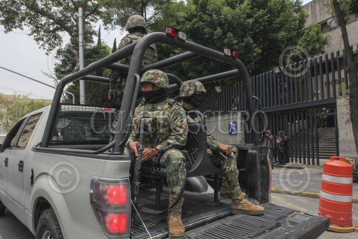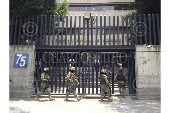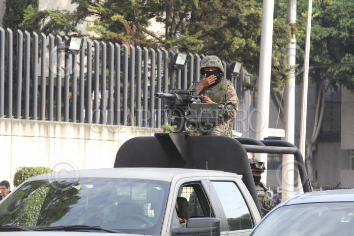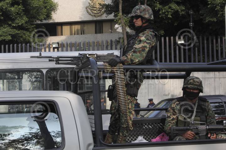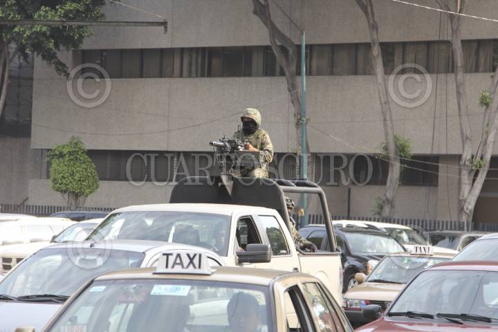 MÉXICO, D.F., 16JULIO2013.- Intensa presencia de seguridad por parte de elementos de la Armada de México, resguardan las instalaciones de la SEIDO, donde declara el líder de los zetas el "Z-40". FOTO: SAÚL LÓPEZ /CUARTOSCURO.COM
