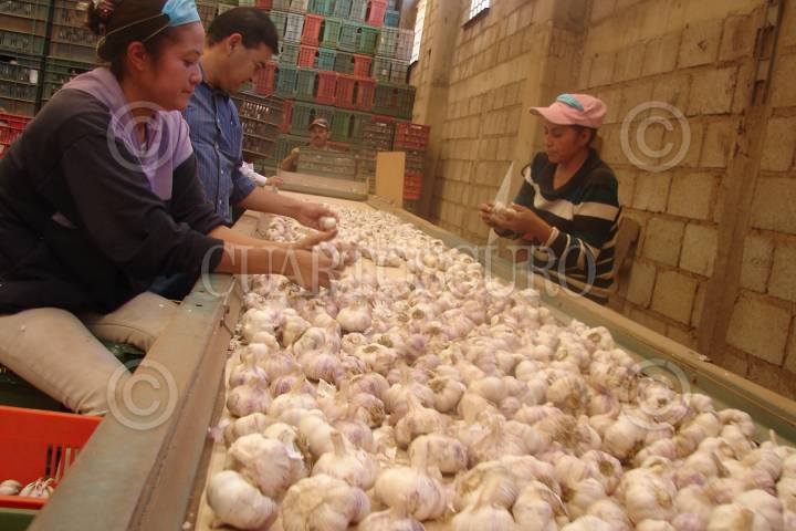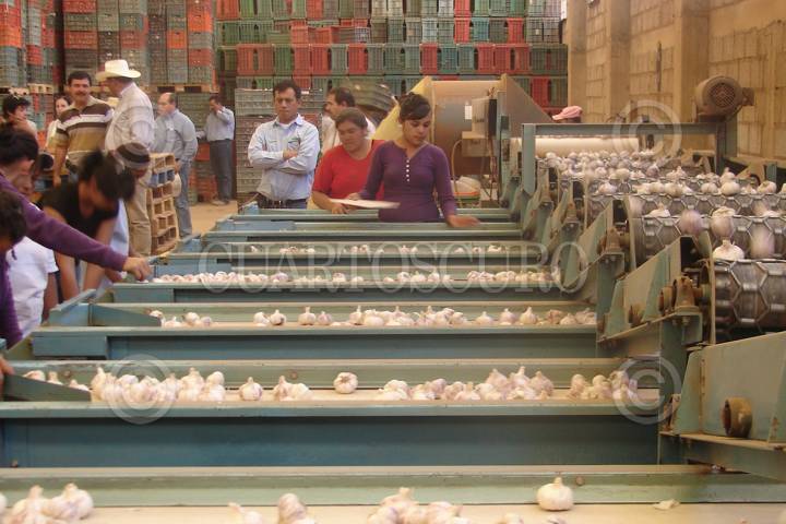 ZACATECAS, ZACATECAS, 19JUNIO2011.- En el campo zacatecano se tienen 2 mil hectáreas destinadas a la siembra de ajo, 40 por ciento de ellas corresponde a la Integradora AjoZac, quienes venden sus productos principalmente en la Ciudad de México y exportan a la Unión Europea y Australia. En la imagen, trabajadores de la planta procesadora y frigoríficos, en donde almacenan hasta 2 mil toneladas. FOTO: ESPECIAL/CUARTOSCURO.COM