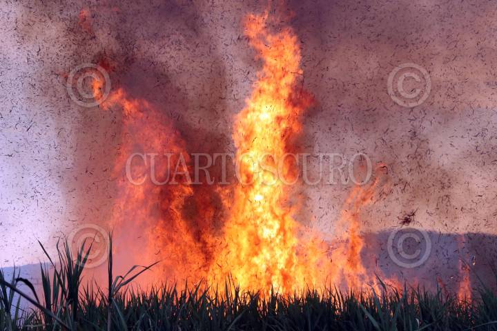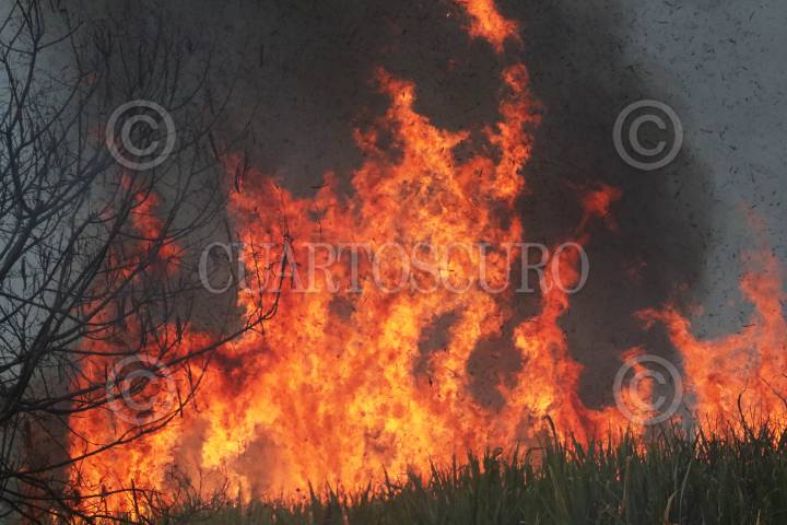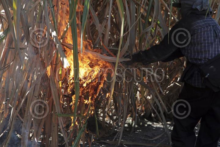Quema de un cañaveral en la zona de las Compuertas, cerca del manantial de las Estacas.