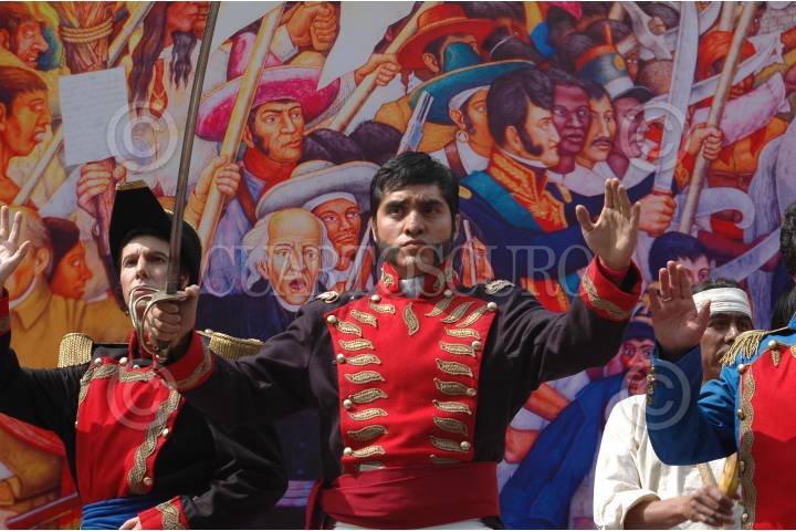 MÉXICO, D.F., 13SEPTIEMBRE2009.-Esta tarde inició sobre paseo de la Reforma, el desfile de Niños por el Bicentenario con carros alegóricos, deportistas y artistas sobre zancos. FOTO: LUZ MORENO/CUARTOSCURO.COM