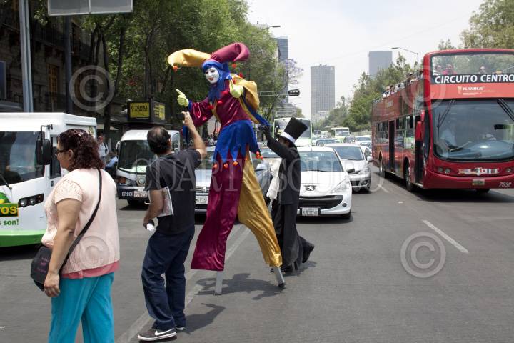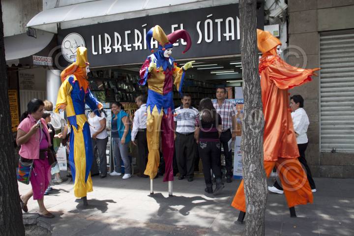 MÉXICO, D.F., 28ARIL2012.- Zanqueros alegraron a los capitalinos que andaban por la avenida Juárez en el Centro Histórico. FOTO: MOISÉS PABLO /CUARTOSCURO.COM
