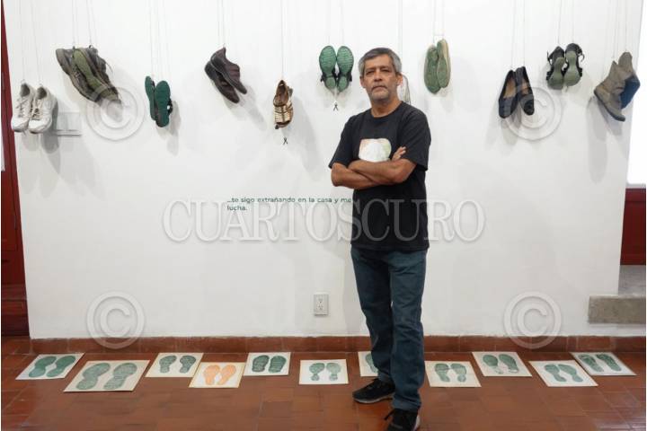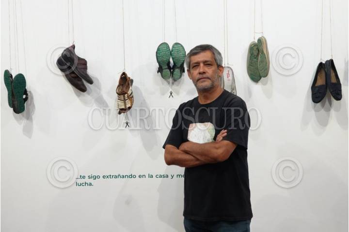 CIUDAD DE MÉXICO, 07MAYO2025.- Alonso López, curador de la exposición "Huellas de la memoria", encabezó un recorrido en el Palacio de Minería. La muestra contiene más de 280 pares de zapatos de familiares que buscan a sus seres queridos en los estados de la República. Estará abierta al público del 8 de mayo al 3 de agosto. FOTO: GRACIELA LÓPEZ/CUARTOSCURO.COM