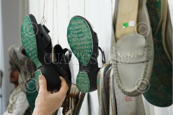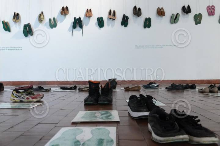 CIUDAD DE MÉXICO, 07MAYO2025.- Se llevó el recorrido de la exposición "Huellas de la memoria" en el Palacio de Minería. La muestra contiene más de 280 pares de zapatos de familiares que buscan a sus seres queridos en los estados de la República. Estará abierta al público del 8 de mayo al 3 de agosto. FOTO: GRACIELA LÓPEZ/CUARTOSCURO.COM