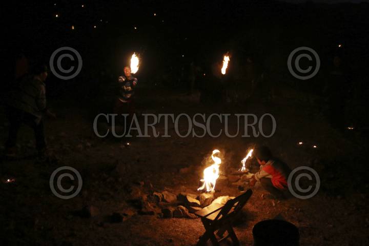TEOTITLÁN DEL VALLE, OAXACA, 02ENERO2015.- Indígenas zapotecas del municipio de Teotitlán del Valle recibieron el año nuevo con una antigua tradición llamada la "Danza de Fuego" con la que agradecen a los dioses la llegada de un nuevo año. Esta danza la realizan niños, jóvenes y adultos en el cerro llamado "El Pedimento" y se lleva a cabo durante los 3 primeros días del año. FOTO: ARTURO PÉREZ ALFONSO /CUARTOSCURO.COM