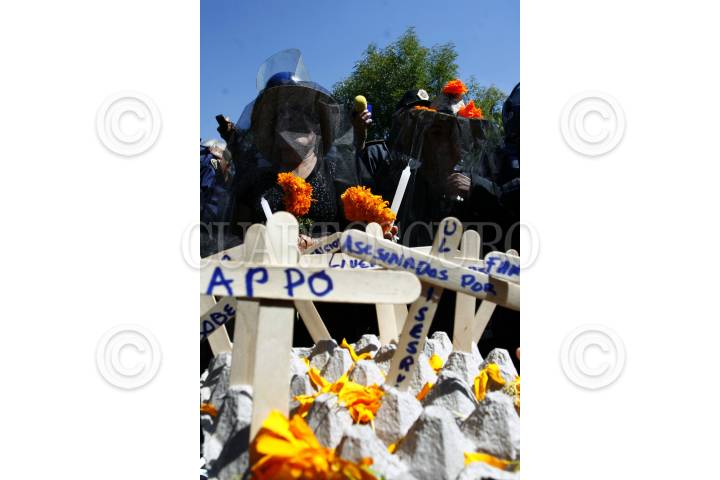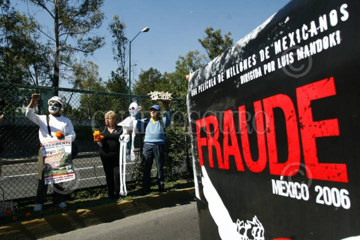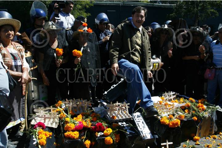 MÉXICO, D.F. 01NOVIEMBRE2007.- Gerardo Fernandez Noroña e integrantes de la Convención Nacional Democrática se manifestaron a las afueras de la Residencia Oficial de Los Pinos. Ataudes y Flores de zempasuchitl fueron colocadas frente a la entrada principal. FOTO: PAOLA HIDALGO/CUARTOSCURO.COM