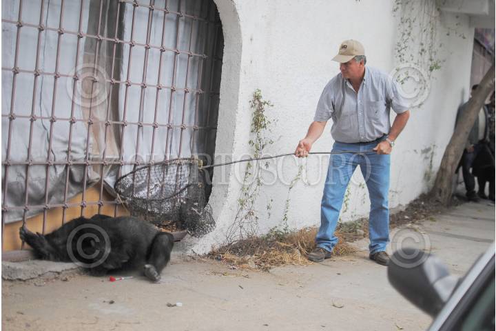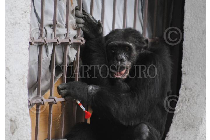 CHILPANCINGO, GUERERO 06 ENERO 2015.- Un Chimpancé, se escapó del zoológico “Zochilpan” que se encuentra en remodelación y cerrado al público, subió a viviendas, saltando de edificio a edificio avanzo varias cuadras, mientras personal del zoológico y de protección civil municipal le seguían para capturarlo, al ser alcanzado por dos dardos sedantes, tras surtir efecto y fue capturado lo llevado de regreso al zoológico. FOTOS: JOSÉ I.HERNÀNDEZ / CUARTOSCURO.COM