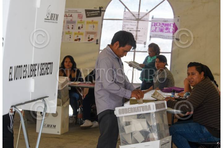 Aspectos en la zona indígena Otomí en la parte norte del municipio de Toluca, las urnas ya lucen casi llenas.