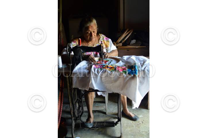 FELIPE CARRILLO PUERTO, QUINTANA ROO, 09FEBRERO2015.- Descendientes de los rebeldes mayas “Cruzoob” se encargan de resguardar y representar la identidad del Caribe Mexicano, cuidando con recelo la lengua maya, las tradiciones, las formas de vida y la herencia cultural de hace más de dos siglos. Resguardados en el corazón del estado de Quintana Roo, en los municipios de Felipe Carrillo Puerto y José María Morelos, en la Zona Maya, no hay grandes cadenas hoteleras ni lujosos restaurantes, sólo gente sencilla que se dedica a la agricultura y actividades tradicionales, desde la elaboración de velas por un grupo de artesanos hasta el bordado de huipiles por Doña Bartola, quien a sus 85 años no deja de hilar con su vieja máquina coloridas flores sobre las mantas que visten la gran tradición de los pueblos mayas. FOTO: ELIZABETH RUIZ /CUARTOSCURO.COM