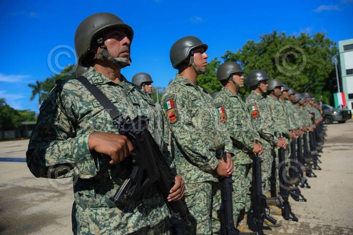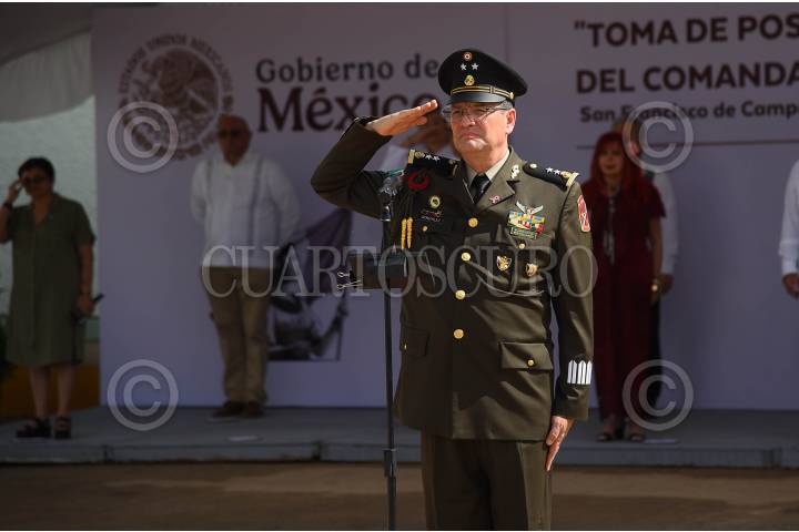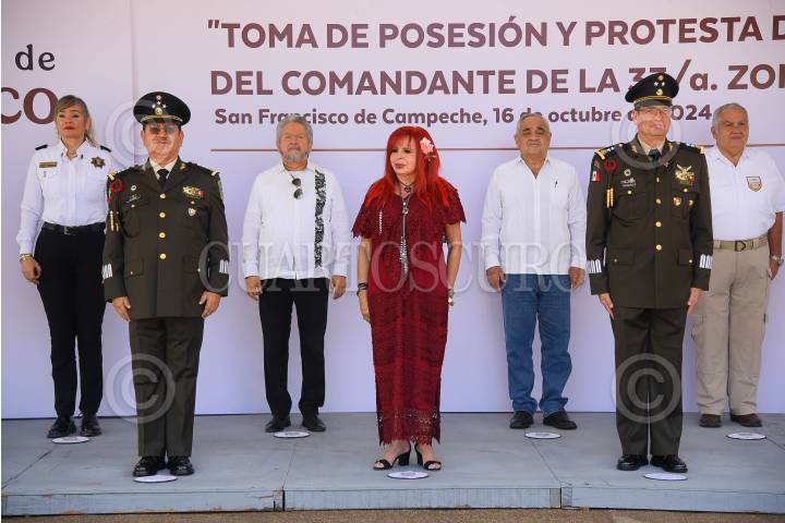 CAMPECHE, CAMPECHE, 16OCTUBRE2024.- Alberto Ramón González Hernández, tomó posesión y rindió protesta de bandera como comandante de la 33 Zona Militar en el Estado de Campeche. En el acto estuvieron presentes la gobernadora del estado Layda Sansores San Román, el comandante del décimo batallón de infantería, Ricardo Flores González, así como, José Ignacio Coronel Cruz de la Fiscalía General de la República (FGR). FOTO: MICHAEL BALAM/CUARTOSCURO.COM