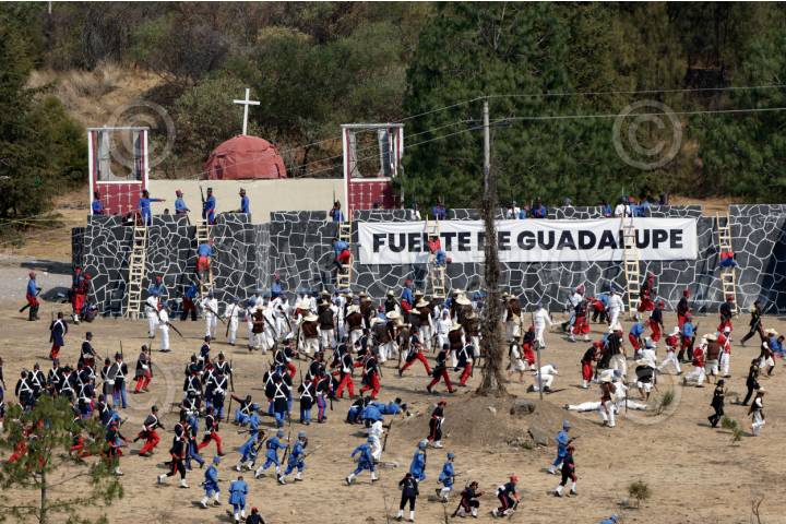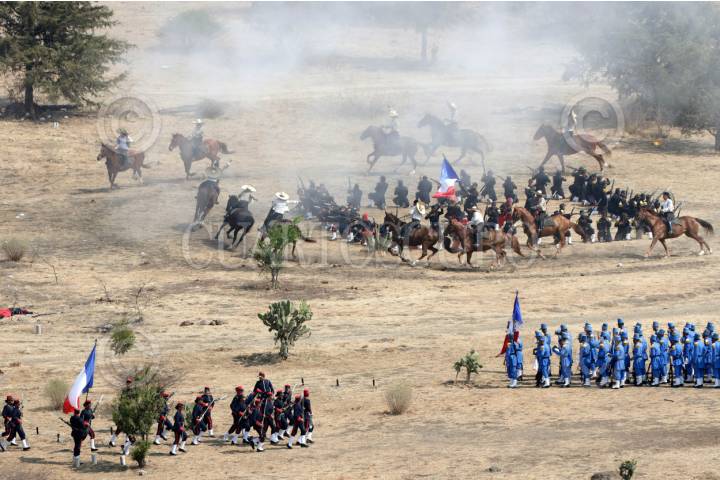 PUEBLA, PUEBLA, 06MAYO2024.- Elementos de la XXV Zona Militar realizaron la Representación de la Batalla del 5 de Mayo, por el 162 aniversario de la gesta heroica. FOTO: MIREYA NOVO/ CUARTOSCURO.COM