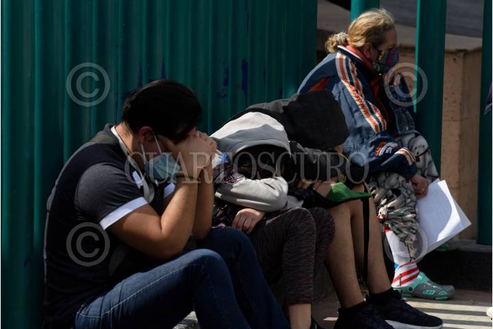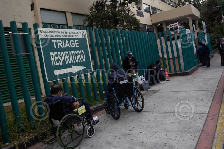 Personas esperan al exterior del del Hospital Centro Médico Nacional Siglo XXI para poder ser evaluados por sus síntomas respiratorios.