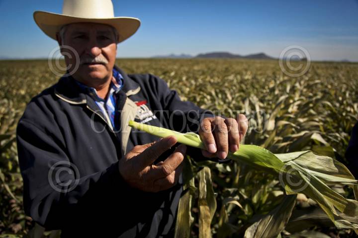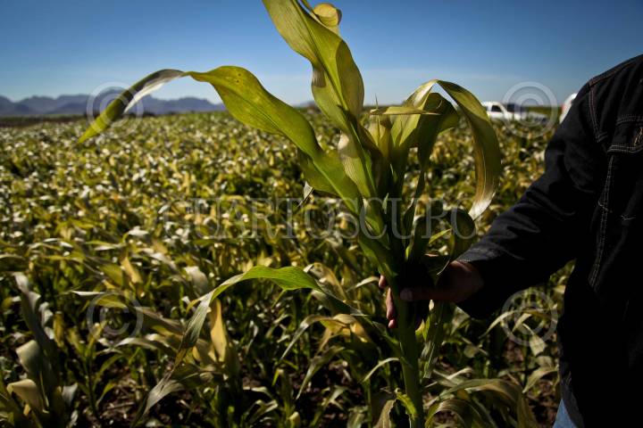 LOS MOCHIS, SINALOA, 17ENERO2013.- Debido a las bajas temperaturas registradas en el norte del estado de Sinaloa el gobierno estatal calcula que unas 19 mil personas han resultado afectadas pues 35 mil hectáreas de maíz y garbanzo presentan perdidas totales. El secretaria de agricultura. Juan Guerra se reunió con productores para realizar un recorrido por las zonas afectadas. FOTO: RASHIDE FRIAS /CUARTOSCURO.COM