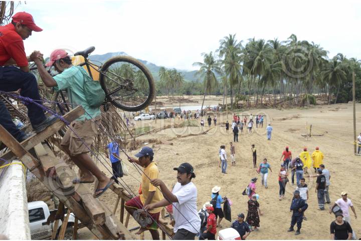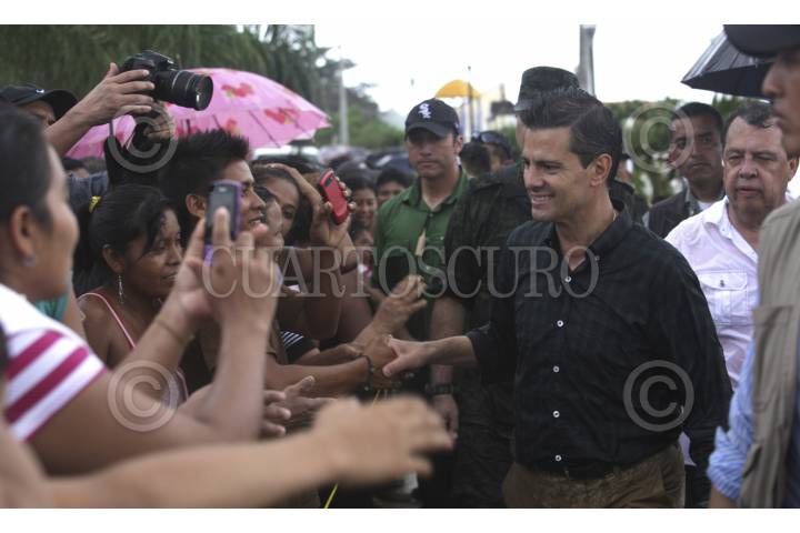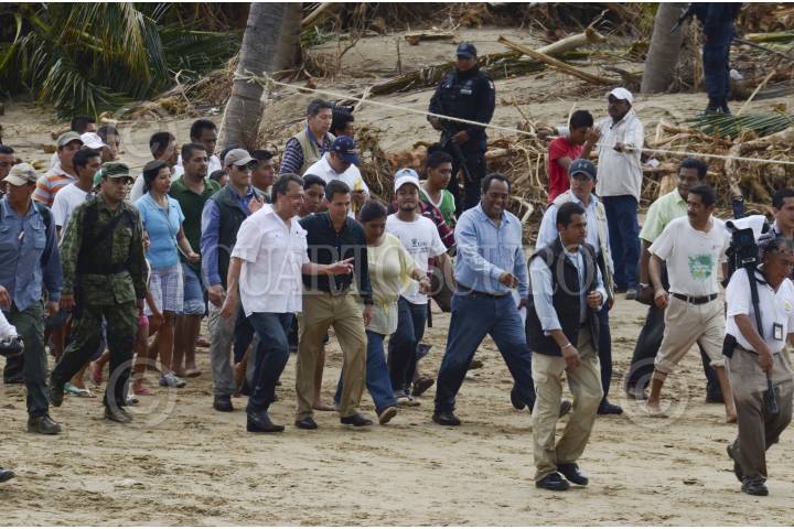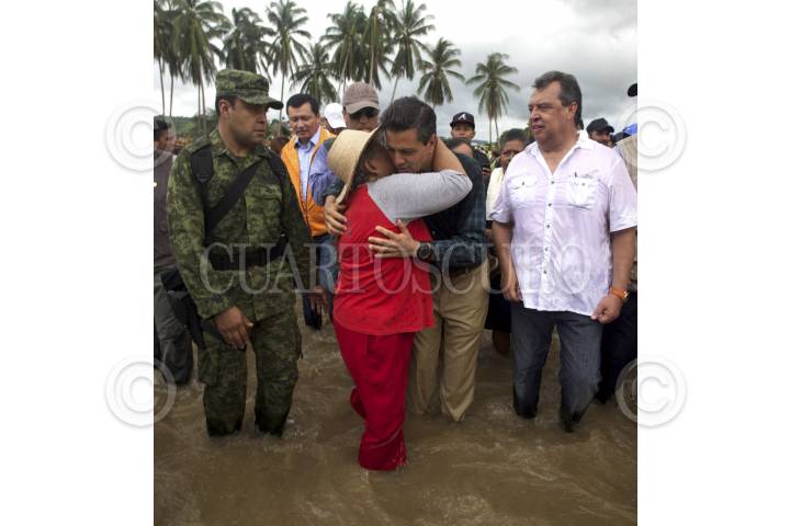 COYUCA DE BENÍTEZ, GUERRERO, 24SEPTIEMBRE2013.- El Presidencia de México Enrique Peña Nieto recorrió las zonas afectadas por las inundaciones, a su paso la gente le pidió ayuda, el mandatario aseguró que por el momento restablecerán el puente que fue derribado por las lluvias provocadas por los meteoros Manuel e Ingrid. El Jefe del Ejecutivo cruzó una parte en la crecida del río. FOTO: PRESIDENCIA /CUARTOSCURO.COM