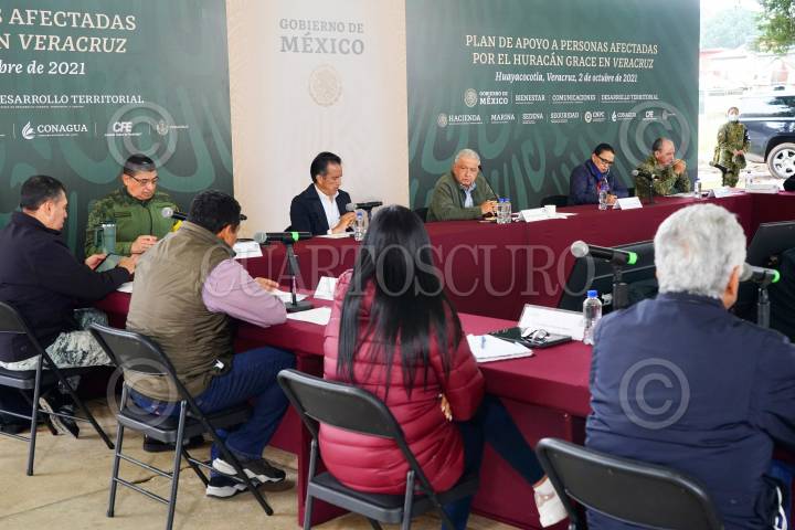 Andrés Manuel López Obrador, presidente de México, presidió el Plan de Apoyo a personas afectadas por el Huracán Grace en Veracruz. Lo acompañaron: Luis Cresencio Sandoval González, Secretario de la Defensa Nacional; Cuitláhuac García Jiménez, Gobernador Constitucional del Estado de Veracruz de Ignacio de la Llave; Rosa Icela Rodríguez Velázquez, Secretaria de Seguridad y Protección Ciudadana; José Rafael Ojeda Durán, Secretario de Marina.