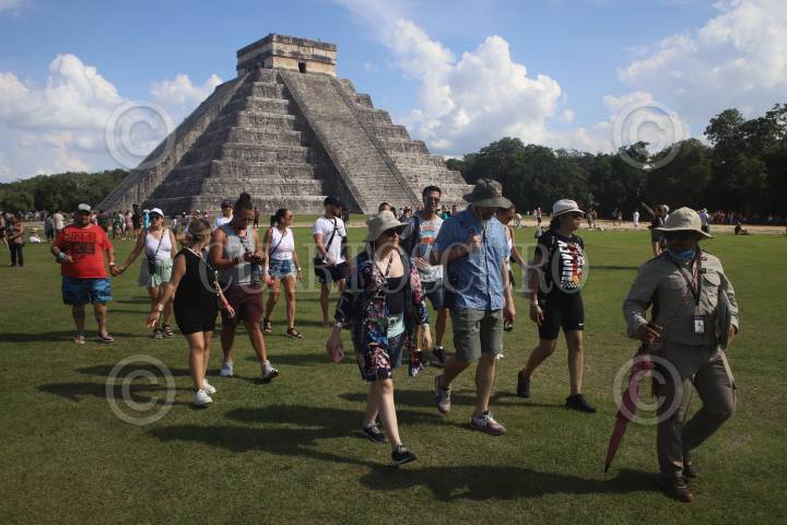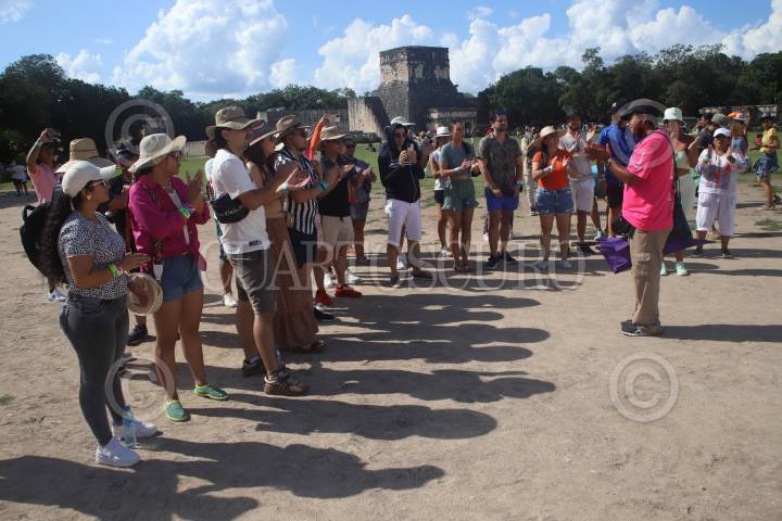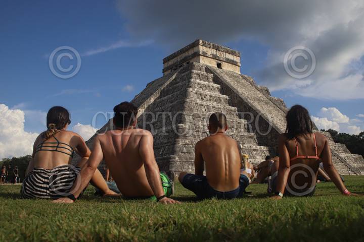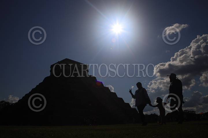Turistas acudieron a la zona arqueológica de Chichén Itzá para disfrutar del solsticio de otoño, que es cuando el dios Kukulcán baja a la tierra.