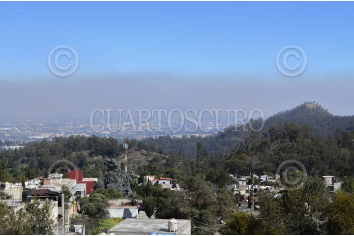 MÉXICO, D.F., 09ENERO2014.- La colonia Viveros de Coatectlán se sitúa en una de las regiones más altas de la delegación Tlalpan. En esta zona el nivel de vida es precario; el acceso por las calles, algunas aun sin pavimentar, es complicado. Desde la calle Mirador Colibrí se ve a lo lejos el valle de la Ciudad de México, coronado por una espesa capa de smog. FOTO: MARÍA JOSÉ MARTÍNEZ /CUARTOSCURO.COM