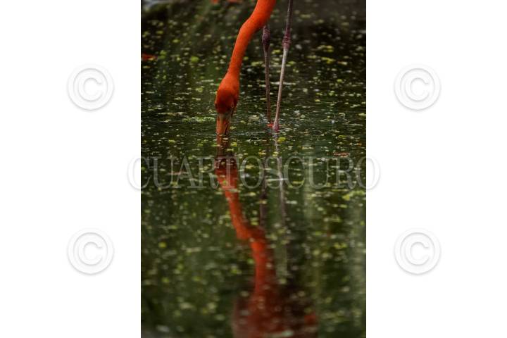 Un flamingo toma agua en las inmediaciones del EcoParc en Colima.
