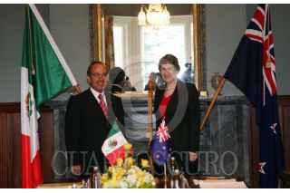 AUCKLAND, NUEVA ZELANDA.7SEPTIEMBRE2007.- El presidente Felipe Calderón Hinojosa durante la reunión con la primer ministro de Nueva Zelanda Helen Clark, que tuvo lugar en la casa de gobierno. FOTO: ALFREDO GUERRERO/CUARTOSCURO.COM