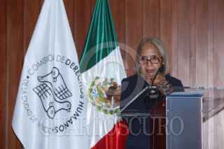 CIUDAD DE MÉXICO, 04OCTUBRE2024. Blanca Olimpia Crespo Arellano, Encargada del despacho de la dirección del Instituto de Ciencias Forenses del Poder Judicial de la CDMX; Ulices Lara López Coordinador general de investigación territorial; Pablo Vázquez Camacho, secretario de Seguridad Ciudadana; Nashieli Ramírez Hernández, Presidenta de Comisión de Derechos Humanos de la Ciudad de México; Josefina Guadalupe Balderas Barrios, madre de Josafat Hasam López Balderas; Santiago Aguirre Espinosa, director del Centro de Derechos Humanos Miguel Agustín Pro Juárez (Centro Prodh) durante su participación en el acto de disculpa pública y reconocimiento de responsabilidad en honra y memoria de Josafat Hasam López Balderas, quien fuera víctima de un asesinato extrajudicial y de la cual se derivó la recomendación 11/2018; acto realizado en las instalaciones de la Comisión de Derechos Humanos de la Ciudad de México. FOTO: EDGAR NEGRETE LIRA/CUARTOSCURO.COM