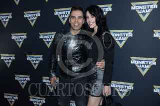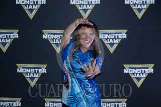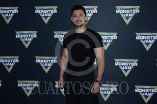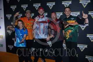 CIUDAD DE MÉXICO, 04OCTUBRE2024. El piloto Armado Castro del vehículo El Toro Loco a su paso por la alfombra amarilla del espectáculo de autos monstruos "Monster Jam", que tendra una corta temporada en el Palacio de los Deportes. FOTO: EDGAR NEGRETE LIRA/CUARTOSCURO.COM