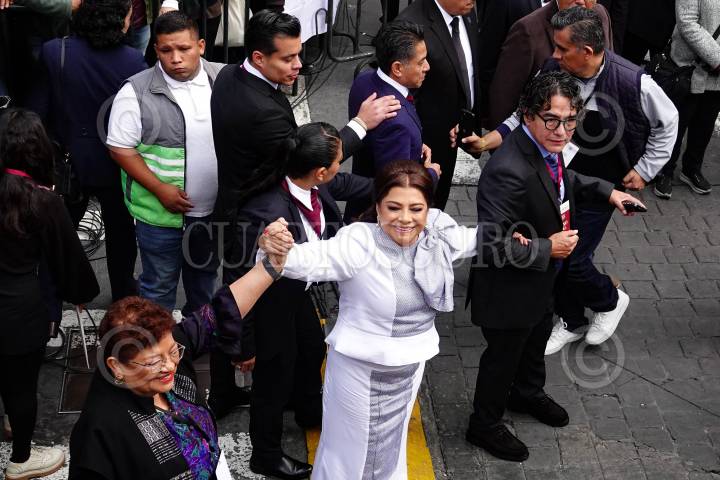 CIUDAD DE MÉXICO, 05OCTUBRE2024.- Clara Brugada, durante su llegada al Congreso Local para la toma de protesta como jefa de gobierno electa. FOTOS: ROGELIO MORALES /CUARTOSCURO.COM