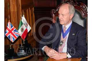 MONTERREY, NL.. 06SEPTIEMBRE2007.-José Natividad González Parás gobernador del estado, sostuvo una reuniòn Lord Mayor of London, John Stuttard quien a diferencia del alcalde de Londres es una figura con titulo nobiliario que representa la monarquia Britanica. El Lord intercambio impresiones culturales con el gobernador con miras al Forum Universal de las Culturas. FOTO: PEDRO KRISTIAN LOPEZ/CUARTOSCURO.COM